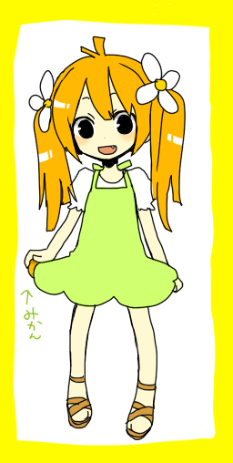 女の子の髪飾りはみかんの花です。